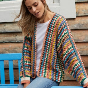 Crochet Cotton Cardigan – Bright Colourful Cardi – Hand Crocheted Cardigan – 100% Cotton – Sustainable Clothing – Slow Fashion – Pachamama