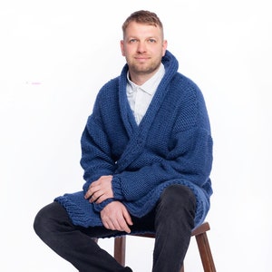 Hand Knitted Lightweight 100 % Wool Cardigan, Oversized Wool Cardigan, Long Men’s Cardigan, Men’s Coat, Soft Handmade Cardigan, Men’s gift